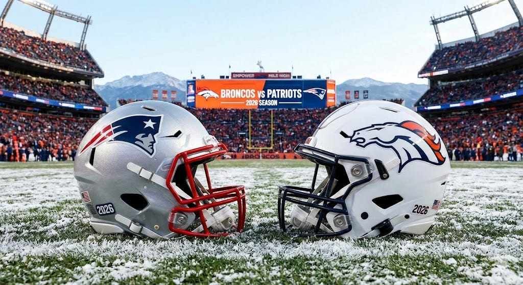 Matchup: New England Patriots (14-3) vs. Denver Broncos (14-3) Venue: Empower Field at Mile High, Denver, Colorado Kickoff: Sunday, January 25, 2026, 3:00 PM ET Broadcast: CBS / Paramount+ Opening Line: Broncos -1.5 Current Line: Patriots -5.5 Total: 41.5