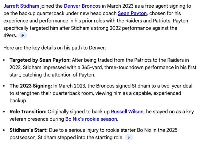 *Error detected* in Gemini’s analysis… it thought Cooper Kupp was on the Rams… he’s on the Seahawks. (It’s possible other errors were made. Gemini 2.5 was way worse… I’m thinking 3.5 or 4.0 will likely make zero errors. Grok is an error machine.)