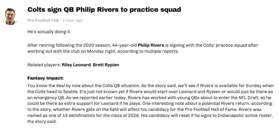 2️⃣ Sign Philip Rivers as a backup / room adult, not as Week 15 savior
