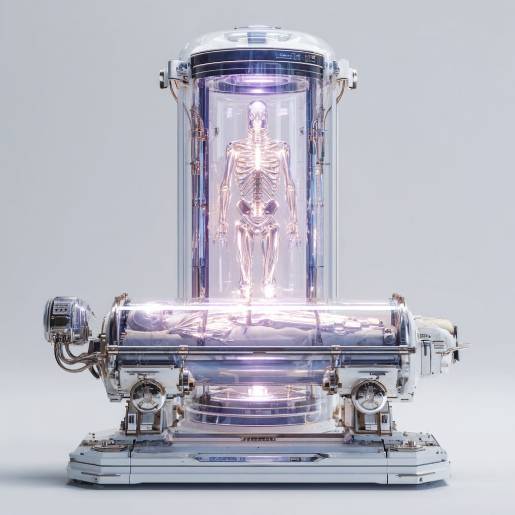 It is an engineered handoff of a vulnerable biological object across a time horizon that exceeds the lifespan of almost every human institution. When you enter a cryopreservation dewar, you are effectively placing yourself in a shipping container addressed to “The Future,” with a manifest that claims you are a person with rights.