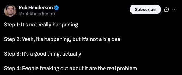 The reason why immigration restrictionists “overindex” on scandals like Feeding Our Future or Tren de Aragua is not because they think these scandals are the whole story, but because they often sense “something is amiss” and are then heavily gaslit by the mainstream media: “it’s not actually happening.”