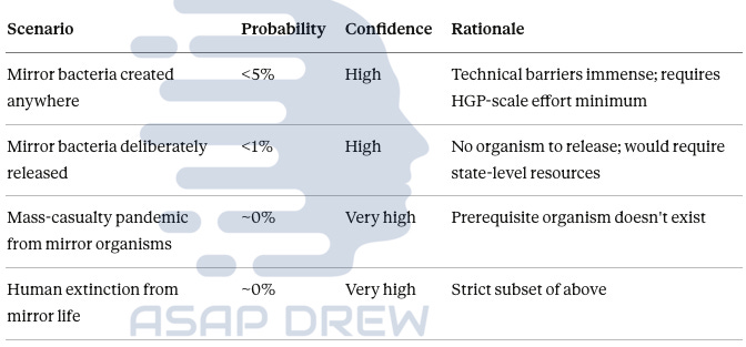 Also: a “mirror virus that infects humans” doesn’t really work the way people intuitively imagine—viruses steal host machinery, so a mirror virus would need a mirror host (think “mirror phage infecting mirror bacteria,” not “mirror COVID”).