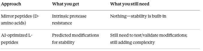 In one study, an L-peptide lost ~90% activity after 8 hours in serum; the D-version was “mainly unaffected”