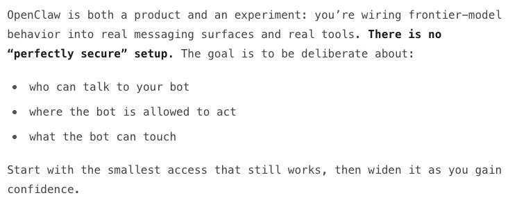 The OpenClaw documentation itself admits:
