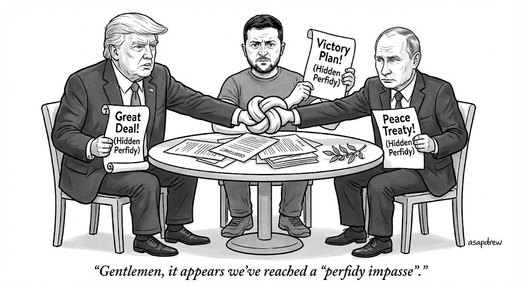 That mix: Russian input, Trump’s ego, and a grinding war, is exactly where something I’ve dubbed the Perfidy Loop shows up.