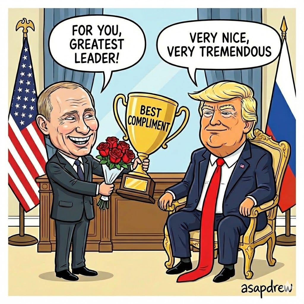 So: Russia helped write the script, Trump branded it as “America First,” and is now desperate to deliver a “historic deal” that proves he kept his promise to “end the war in 24 hours” – a promise he’s since tried to reframe as “a little bit sarcastic,” but which his base and the media haven’t forgotten.