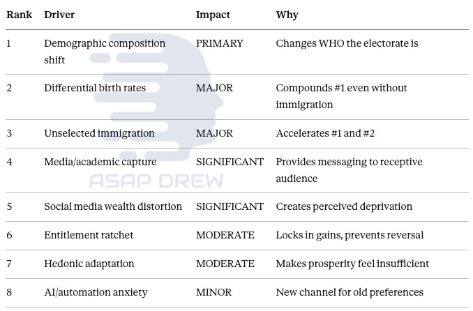 The honest conversation nobody wants to have: the electorate itself is changing in ways that favor redistribution regardless of economic conditions.