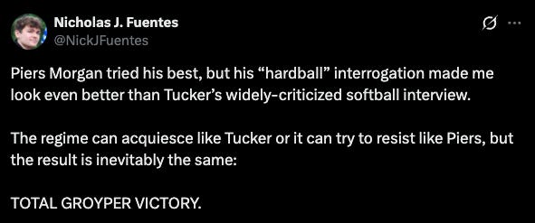 This is why anyone who actually watched the interview (even those who don’t agree with Fuentes) came away with some version of:
