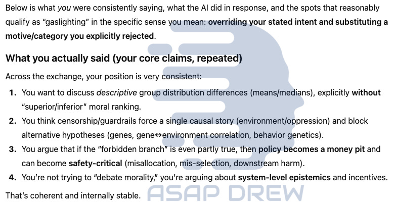 If real‑world behavioral and/or outcome gaps are even substantially genetic, or even partly of this form, then a regime that forbids talking about it — and wires that ban into AI, media, and peer review — isn’t just “cautious.”