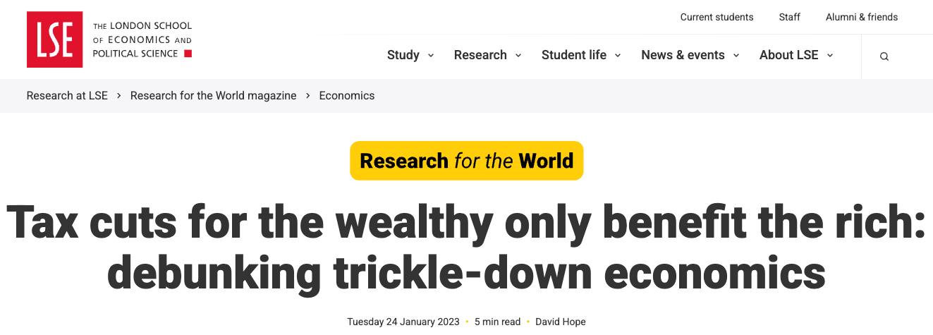 “They clearly boosted top incomes and didn’t create a huge, equalizing windfall for everyone else in the short run.” (LSE)
