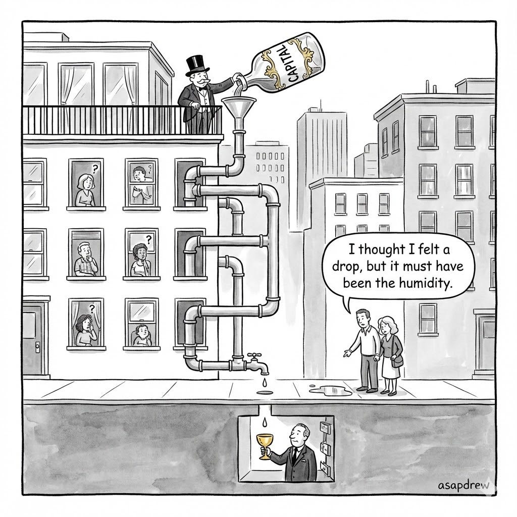 Behind the slogans, here’s how the anti‑trickle‑down story usually goes: