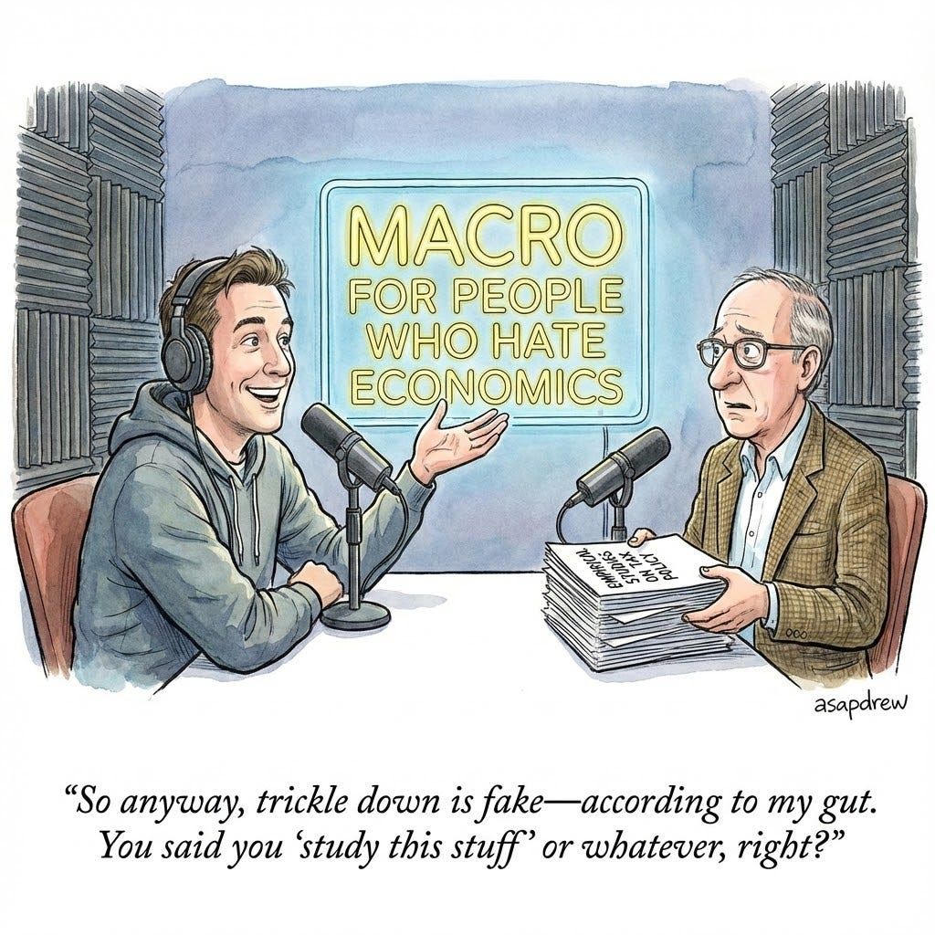 “We cut top rates. We got more inequality, not better growth for the average person. Therefore: trickle‑down doesn’t work.”