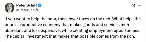 Recently Peter Schiff posted his support for a trickle-down system (without explicitly stating trickle-down economics).