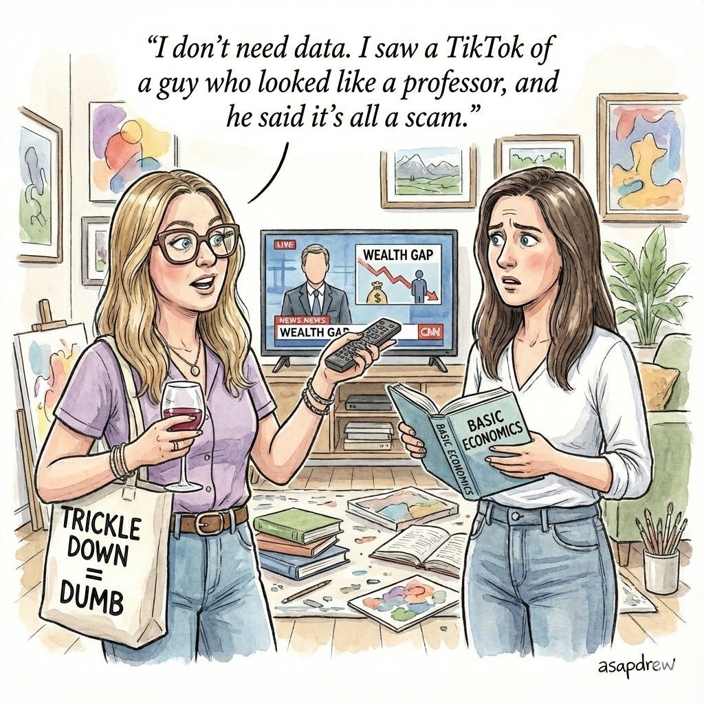 If you think envy and relative financial status matter more than improving absolute living standards and innovation, you will think trickle‑down “doesn’t work” by definition.