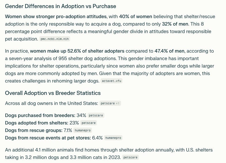 And many White women without kids and lonely White guys end up feeling bad and adopting from a shelter… Women are more likely than men to adopt (perhaps higher empathy or heart-string tugging)… and their choices at the shelters? A lotta Pits.