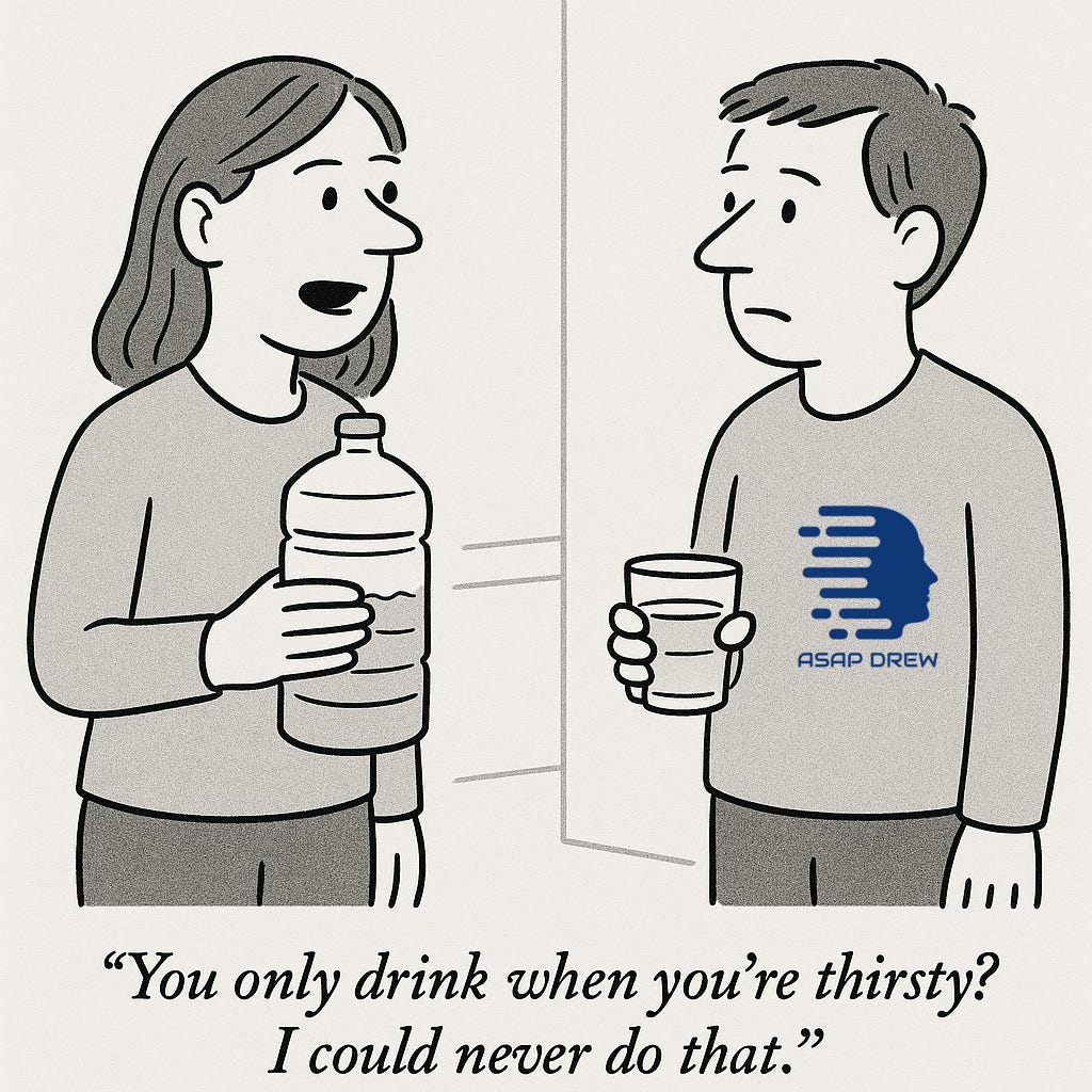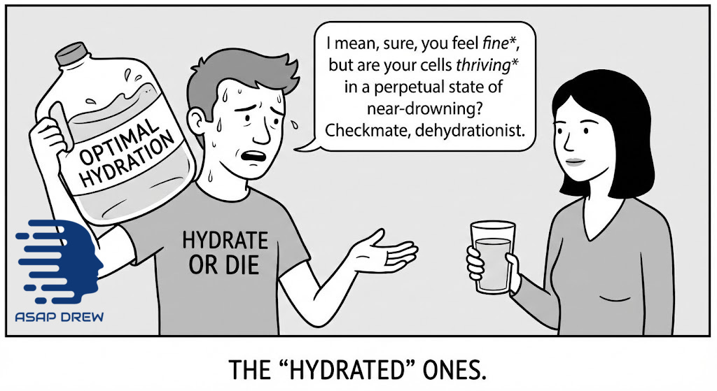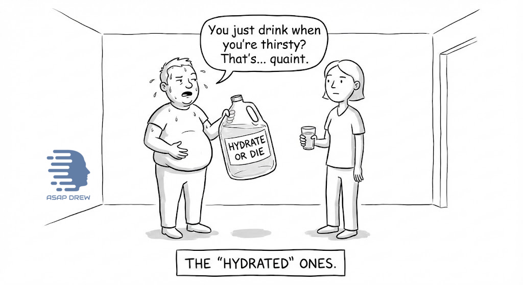Drink when you’re thirsty, drink more when conditions demand it, and ignore anyone trying to sell you the idea that your perfectly functional thirst mechanism is broken.